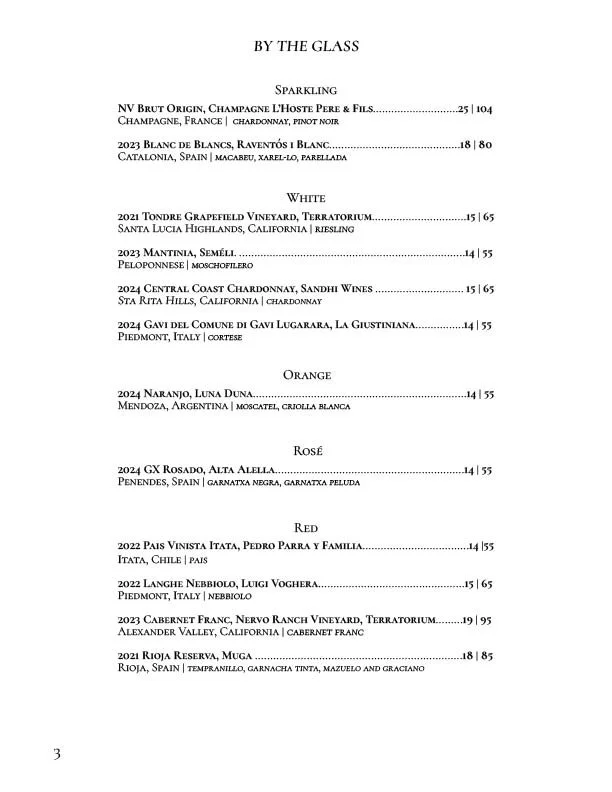 Our WINE By The Glass menu.